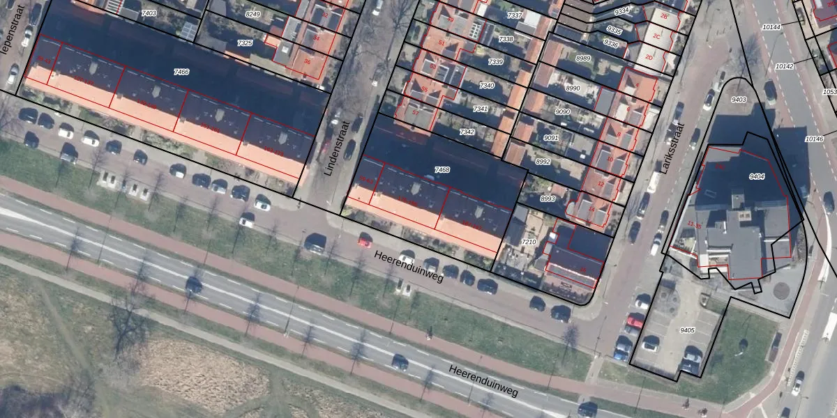 Heerenduinweg 181 is gelegen op kadastraal perceel IMD00M7468. Deze kadastrale aanduiding is uniek en wordt gebruikt door het Kadaster om eigendomsrechten en andere zakelijke rechten vast te leggen. Het perceel maakt onderdeel uit van de kadastrale gemeente IJmuiden.