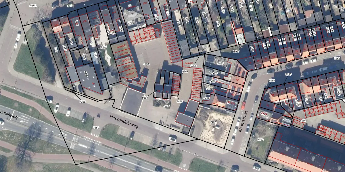 Heerenduinweg 56-0003 is gelegen op kadastraal perceel IMD00M9863. Deze kadastrale aanduiding is uniek en wordt gebruikt door het Kadaster om eigendomsrechten en andere zakelijke rechten vast te leggen. Het perceel maakt onderdeel uit van de kadastrale gemeente IJmuiden.