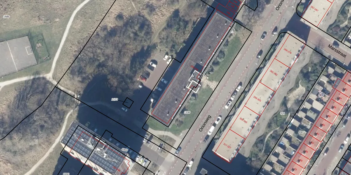 Het perceel waarop Orionweg 252 staat heeft een oppervlakte van 5100 m². Dit is een zeer groot perceel. De perceeloppervlakte wordt geregistreerd door het Kadaster. Gedetailleerde informatie over de maten van dit perceel kunt u vinden in het rapport Kadastrale kaart met maatvoering van Orionweg 252.
