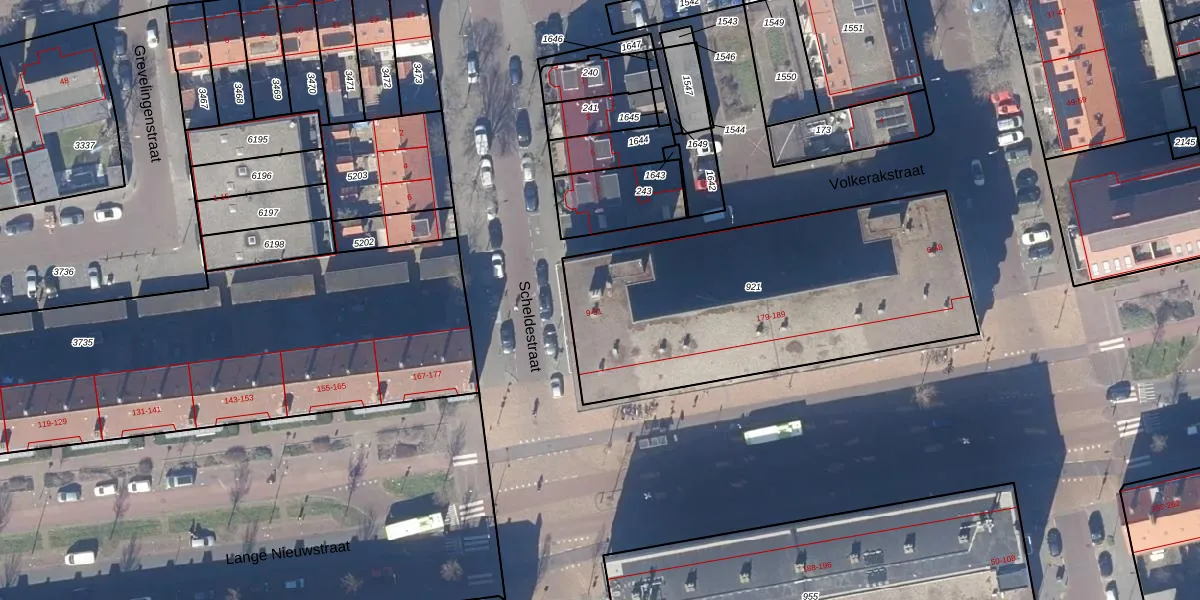 Het perceel waarop Scheldestraat 21 staat heeft een oppervlakte van 1627 m². Dit is een zeer groot perceel. De perceeloppervlakte wordt geregistreerd door het Kadaster. Gedetailleerde informatie over de maten van dit perceel kunt u vinden in het rapport Kadastrale kaart met maatvoering van Scheldestraat 21.