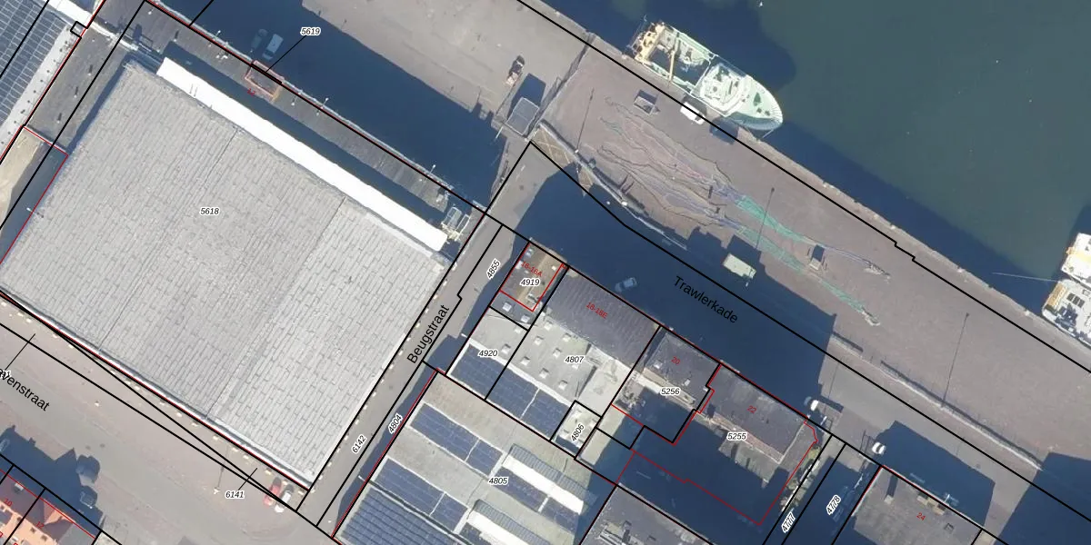 Het perceel waarop Trawlerkade 16-A staat heeft een oppervlakte van 115 m². Dit is een middelgroot perceel. De perceeloppervlakte wordt geregistreerd door het Kadaster. Gedetailleerde informatie over de maten van dit perceel kunt u vinden in het rapport Kadastrale kaart met maatvoering van Trawlerkade 16-A.