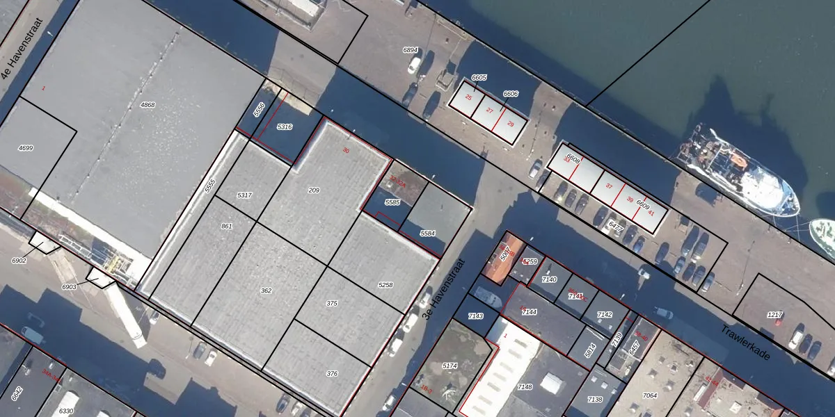 Het perceel waarop Trawlerkade 32-A staat heeft een oppervlakte van 175 m². Dit is een middelgroot perceel. De perceeloppervlakte wordt geregistreerd door het Kadaster. Gedetailleerde informatie over de maten van dit perceel kunt u vinden in het rapport Kadastrale kaart met maatvoering van Trawlerkade 32-A.