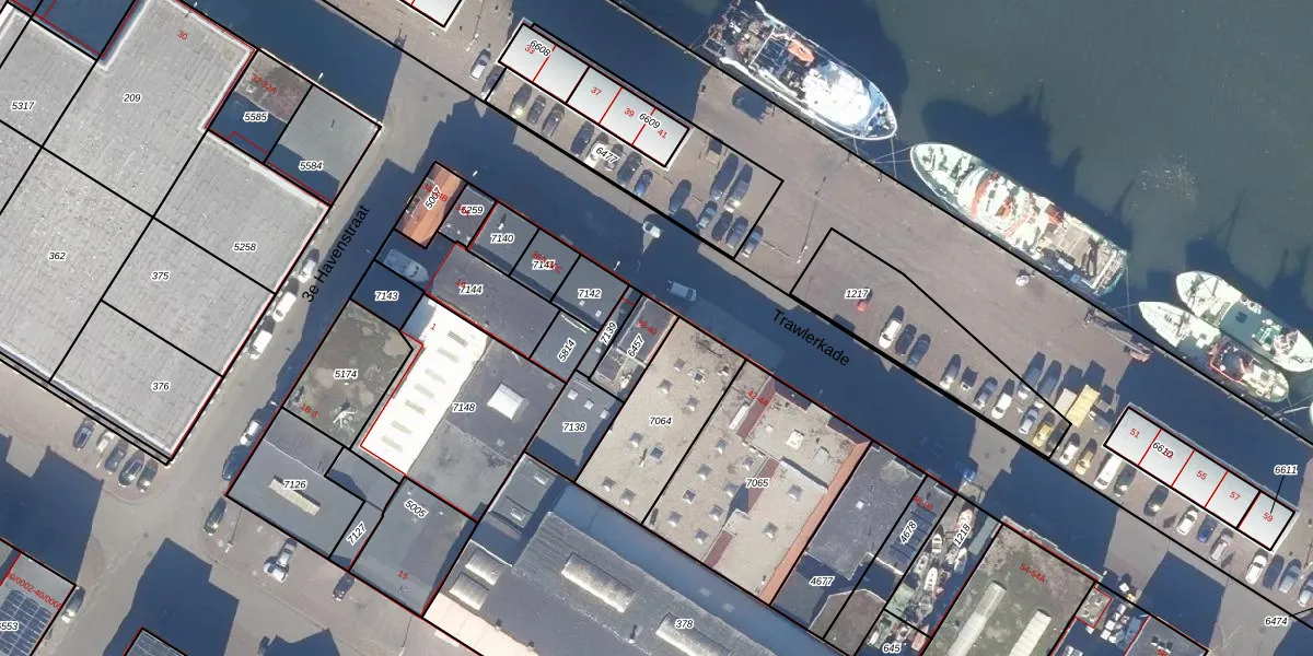 Trawlerkade 38 is gelegen op kadastraal perceel IMD00L6457. Deze kadastrale aanduiding is uniek en wordt gebruikt door het Kadaster om eigendomsrechten en andere zakelijke rechten vast te leggen. Het perceel maakt onderdeel uit van de kadastrale gemeente IJmuiden.
