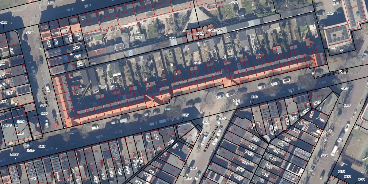 Tussenbeeksweg 43 is gelegen op kadastraal perceel IMD00M4968. Deze kadastrale aanduiding is uniek en wordt gebruikt door het Kadaster om eigendomsrechten en andere zakelijke rechten vast te leggen. Het perceel maakt onderdeel uit van de kadastrale gemeente IJmuiden.
