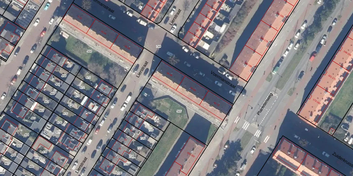 Voermanstraat 40-8000 is gelegen op kadastraal perceel IMD00Q565. Deze kadastrale aanduiding is uniek en wordt gebruikt door het Kadaster om eigendomsrechten en andere zakelijke rechten vast te leggen. Het perceel maakt onderdeel uit van de kadastrale gemeente IJmuiden.