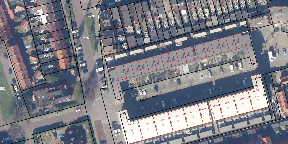 Het perceel waarop Zandershof 13 staat heeft een oppervlakte van 2740 m². Dit is een zeer groot perceel. De perceeloppervlakte wordt geregistreerd door het Kadaster. Gedetailleerde informatie over de maten van dit perceel kunt u vinden in het rapport Kadastrale kaart met maatvoering van Zandershof 13.