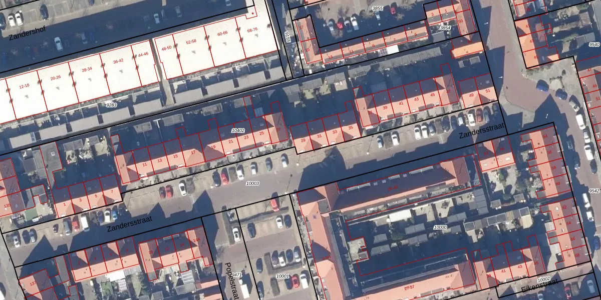 Het perceel waarop Zandersstraat 29 staat heeft een oppervlakte van 4084 m². Dit is een zeer groot perceel. De perceeloppervlakte wordt geregistreerd door het Kadaster. Gedetailleerde informatie over de maten van dit perceel kunt u vinden in het rapport Kadastrale kaart met maatvoering van Zandersstraat 29.