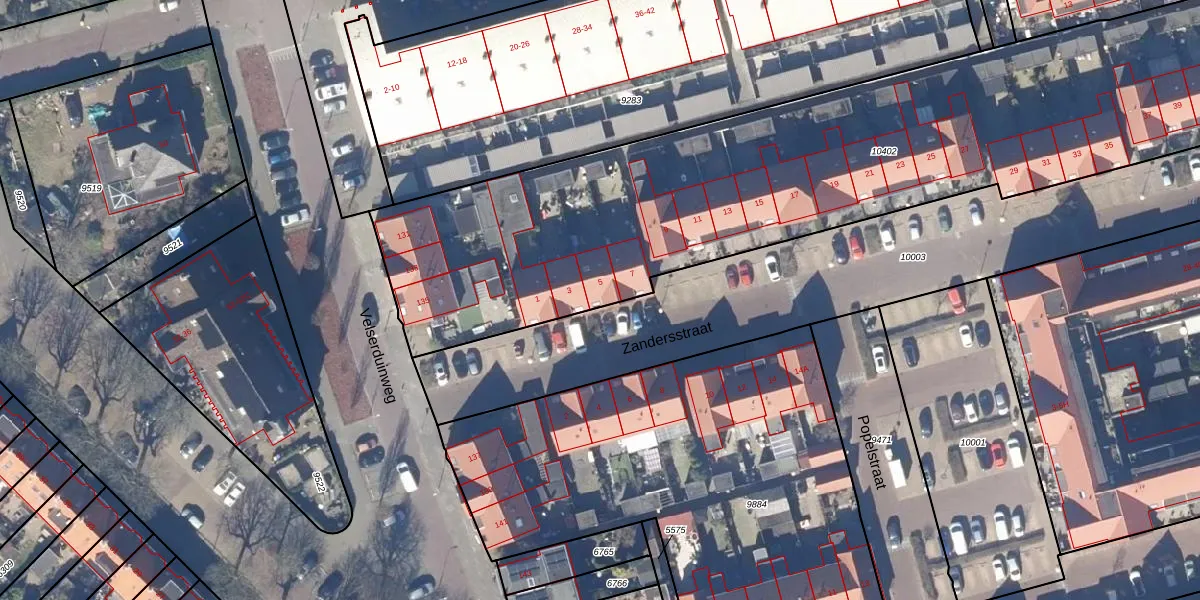 Zandersstraat 5 is gelegen op kadastraal perceel IMD00M10402. Deze kadastrale aanduiding is uniek en wordt gebruikt door het Kadaster om eigendomsrechten en andere zakelijke rechten vast te leggen. Het perceel maakt onderdeel uit van de kadastrale gemeente IJmuiden.