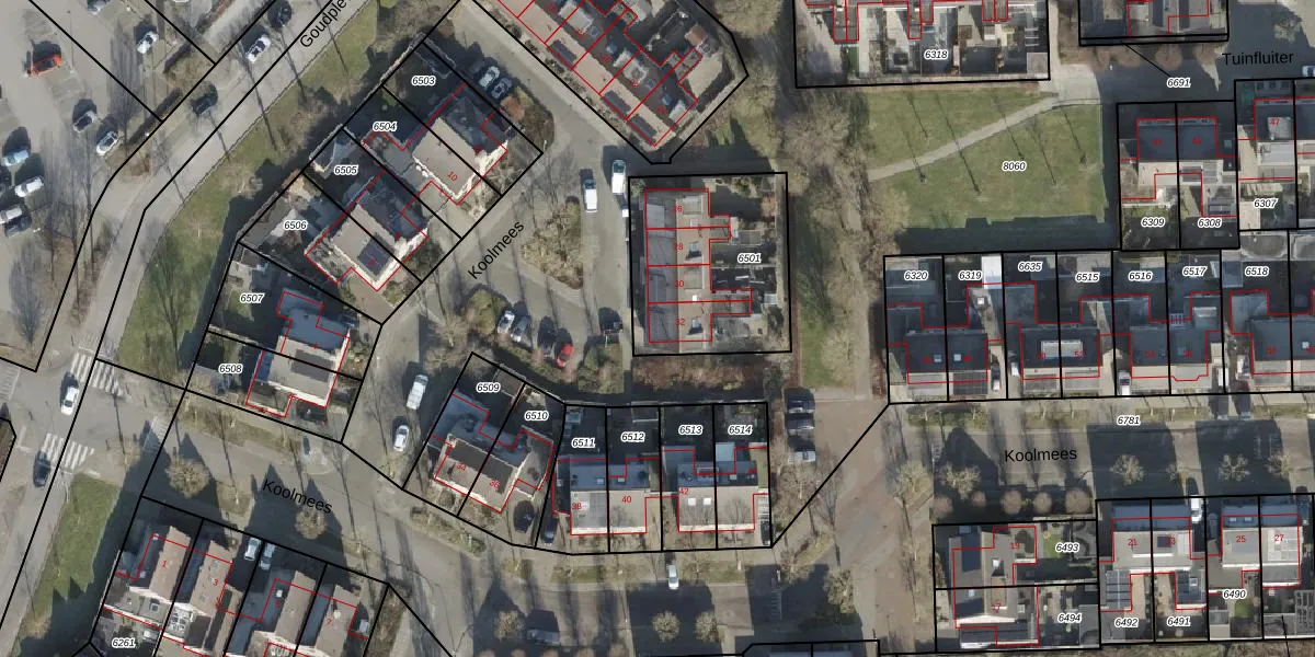Het perceel waarop Koolmees 32 staat heeft een oppervlakte van 653 m². Dit is een groot perceel. De perceeloppervlakte wordt geregistreerd door het Kadaster. Gedetailleerde informatie over de maten van dit perceel kunt u vinden in het rapport Kadastrale kaart met maatvoering van Koolmees 32.