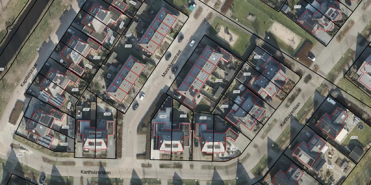 Het perceel waarop Monnikenstraat 1 staat heeft een oppervlakte van 978 m². Dit is een groot perceel. De perceeloppervlakte wordt geregistreerd door het Kadaster. Gedetailleerde informatie over de maten van dit perceel kunt u vinden in het rapport Kadastrale kaart met maatvoering van Monnikenstraat 1.