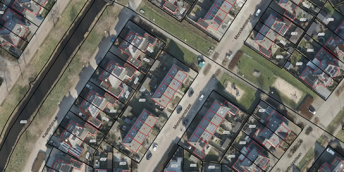Monnikenstraat 14 is gelegen op kadastraal perceel ISM02I1658. Deze kadastrale aanduiding is uniek en wordt gebruikt door het Kadaster om eigendomsrechten en andere zakelijke rechten vast te leggen. Het perceel maakt onderdeel uit van de kadastrale gemeente IJsselmuiden.