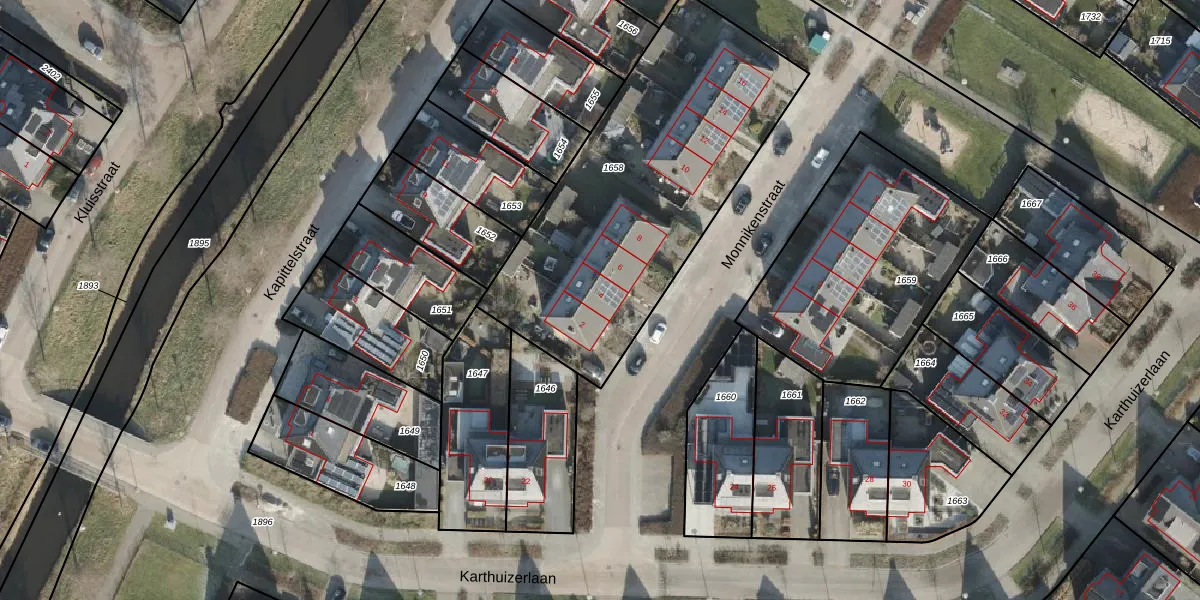 Het perceel waarop Monnikenstraat 4 staat heeft een oppervlakte van 1570 m². Dit is een zeer groot perceel. De perceeloppervlakte wordt geregistreerd door het Kadaster. Gedetailleerde informatie over de maten van dit perceel kunt u vinden in het rapport Kadastrale kaart met maatvoering van Monnikenstraat 4.
