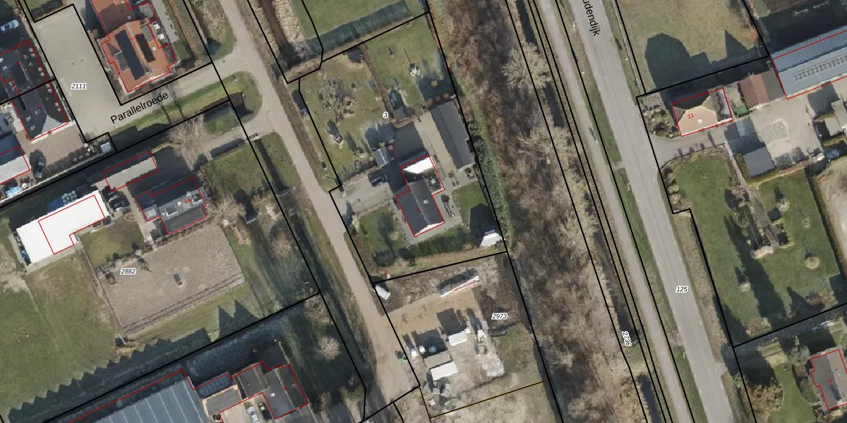 Het perceel waarop Parallelweg 3 staat heeft een oppervlakte van 1902 m². Dit is een zeer groot perceel. De perceeloppervlakte wordt geregistreerd door het Kadaster. Gedetailleerde informatie over de maten van dit perceel kunt u vinden in het rapport Kadastrale kaart met maatvoering van Parallelweg 3.