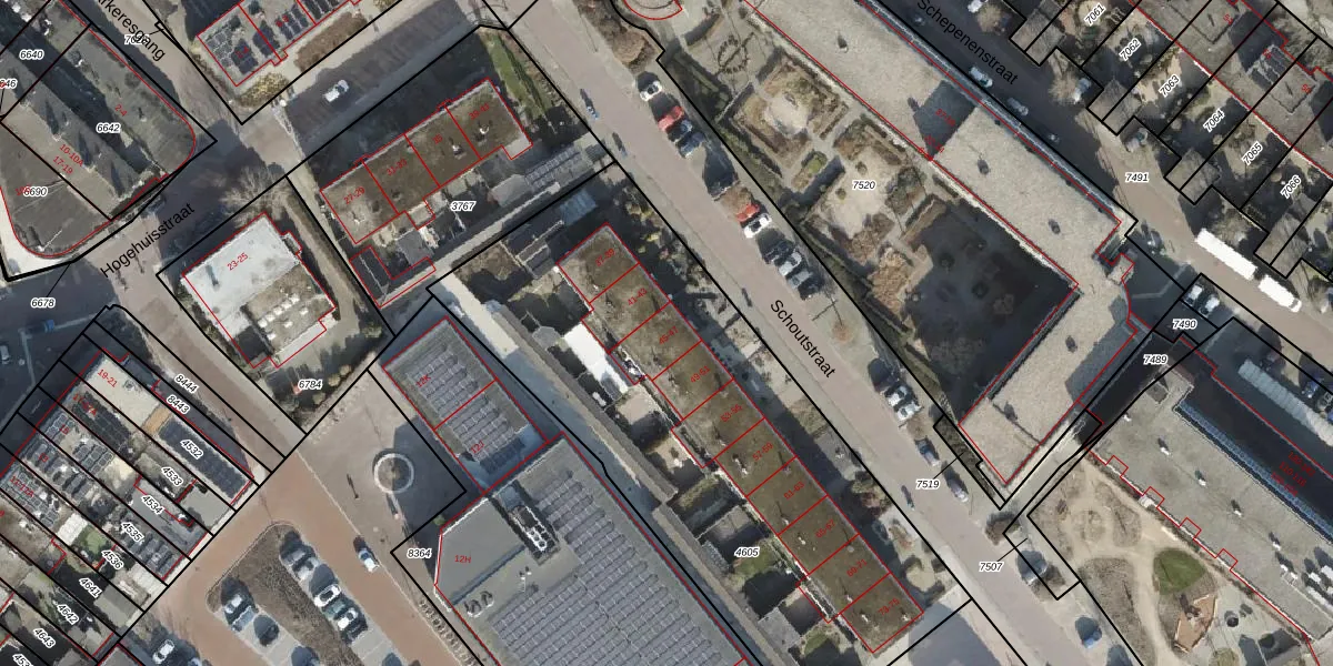 Het perceel waarop Schoutstraat 45 staat heeft een oppervlakte van 2701 m². Dit is een zeer groot perceel. De perceeloppervlakte wordt geregistreerd door het Kadaster. Gedetailleerde informatie over de maten van dit perceel kunt u vinden in het rapport Kadastrale kaart met maatvoering van Schoutstraat 45.