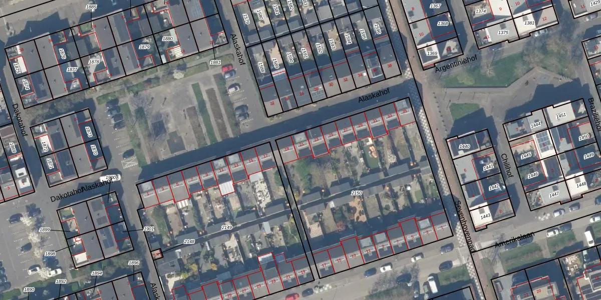 Het perceel waarop Alaskahof 21 staat heeft een oppervlakte van 2255 m². Dit is een zeer groot perceel. De perceeloppervlakte wordt geregistreerd door het Kadaster. Gedetailleerde informatie over de maten van dit perceel kunt u vinden in het rapport Kadastrale kaart met maatvoering van Alaskahof 21.