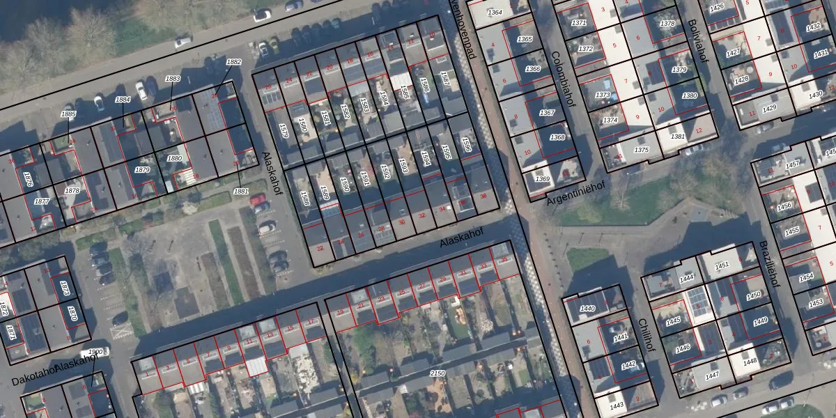 Het perceel waarop Alaskahof 32 staat heeft een oppervlakte van 124 m². Dit is een middelgroot perceel. De perceeloppervlakte wordt geregistreerd door het Kadaster. Gedetailleerde informatie over de maten van dit perceel kunt u vinden in het rapport Kadastrale kaart met maatvoering van Alaskahof 32.