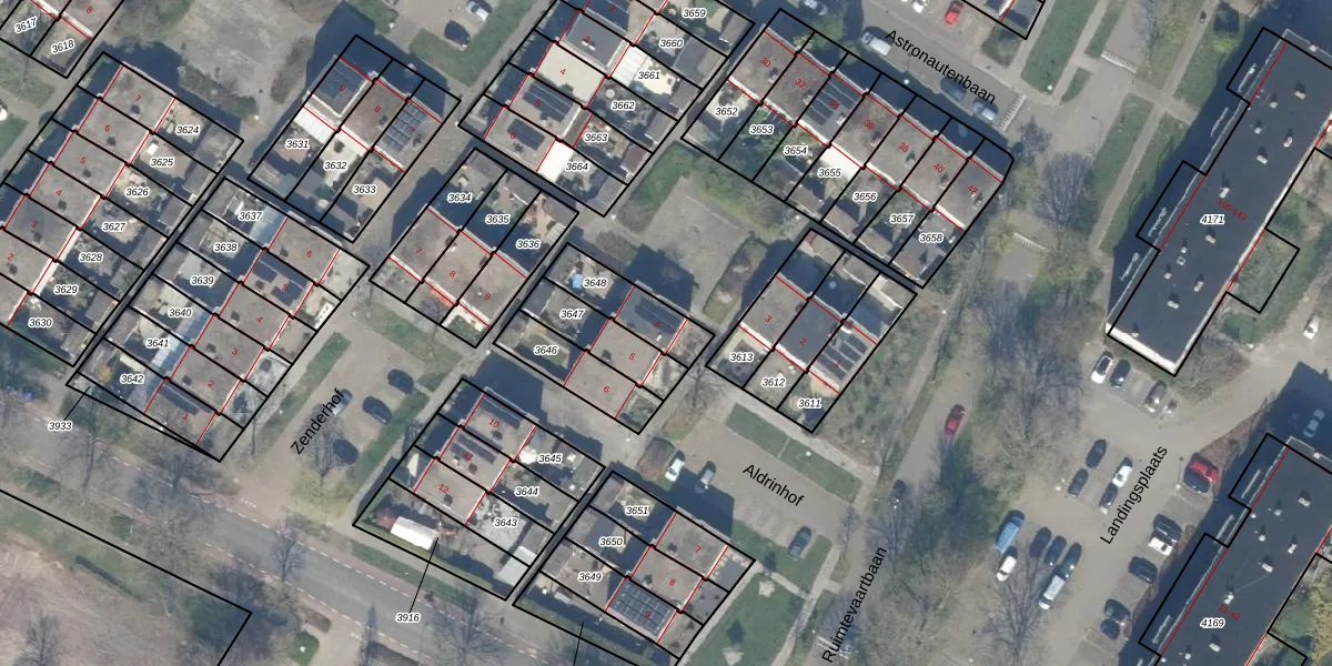 Het perceel waarop Aldrinhof 4 staat heeft een oppervlakte van 162 m². Dit is een middelgroot perceel. De perceeloppervlakte wordt geregistreerd door het Kadaster. Gedetailleerde informatie over de maten van dit perceel kunt u vinden in het rapport Kadastrale kaart met maatvoering van Aldrinhof 4.