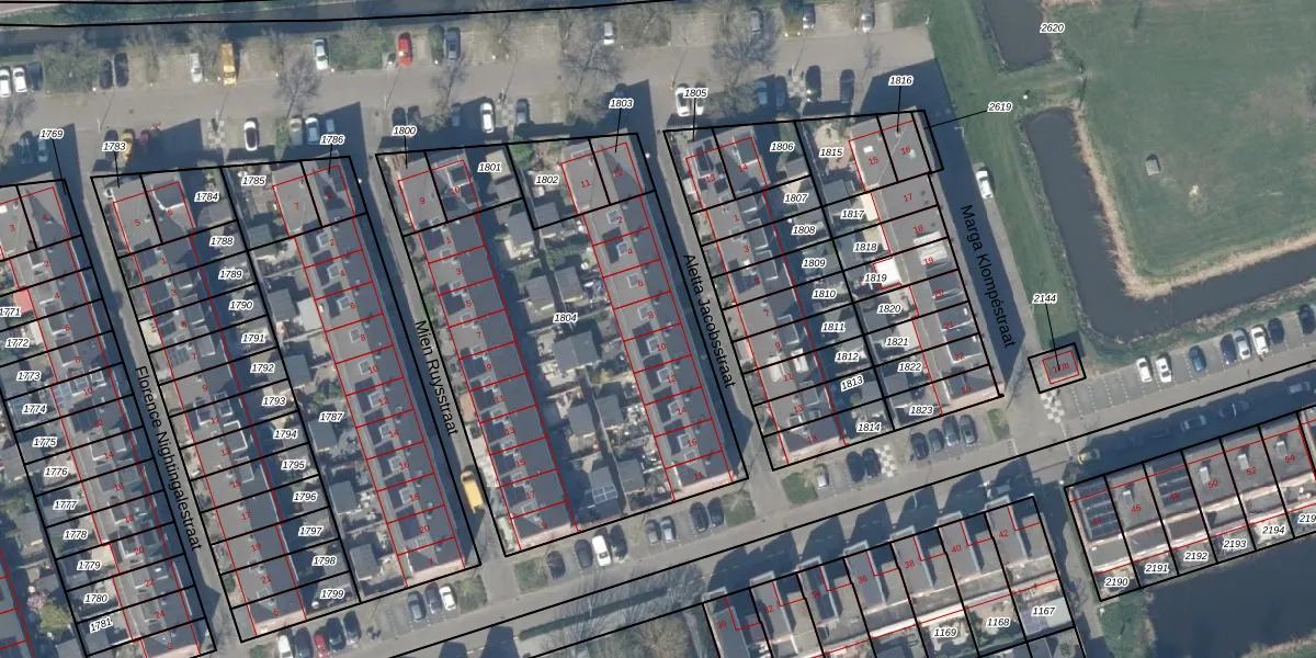 Het perceel waarop Aletta Jacobsstraat 8 staat heeft een oppervlakte van 1879 m². Dit is een zeer groot perceel. De perceeloppervlakte wordt geregistreerd door het Kadaster. Gedetailleerde informatie over de maten van dit perceel kunt u vinden in het rapport Kadastrale kaart met maatvoering van Aletta Jacobsstraat 8.