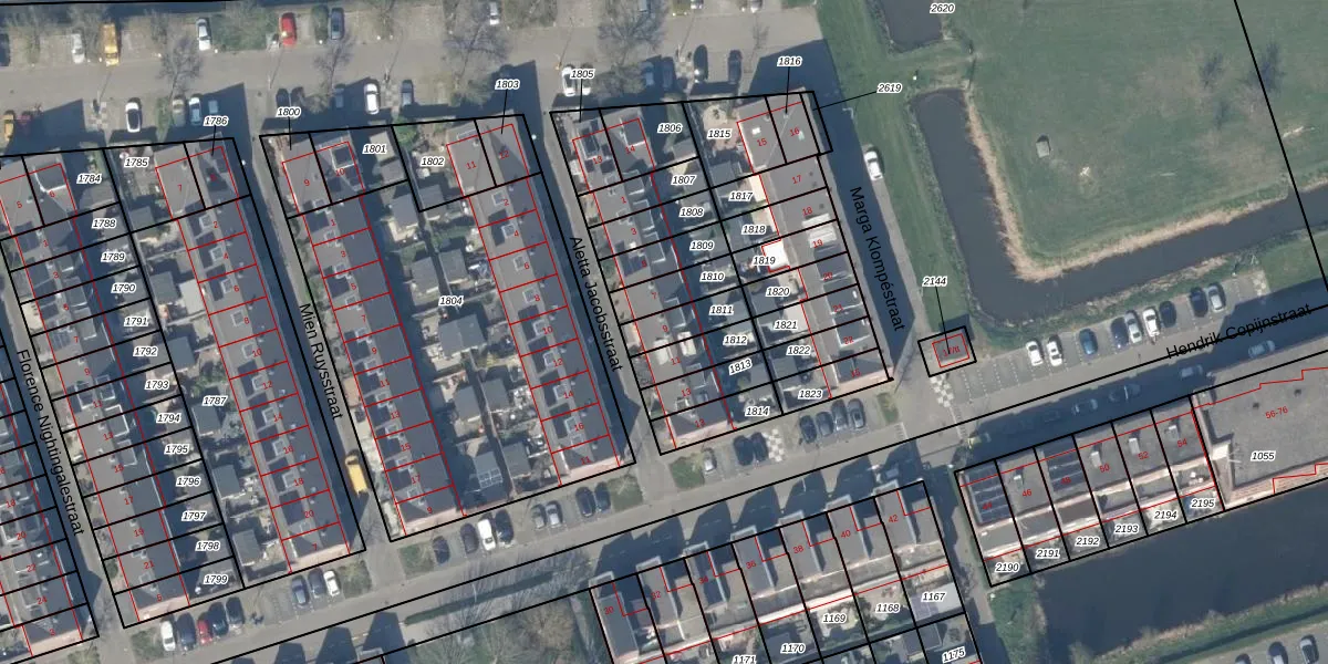 Het perceel waarop Aletta Jacobsstraat 9 staat heeft een oppervlakte van 99 m². Dit is een klein perceel. De perceeloppervlakte wordt geregistreerd door het Kadaster. Gedetailleerde informatie over de maten van dit perceel kunt u vinden in het rapport Kadastrale kaart met maatvoering van Aletta Jacobsstraat 9.