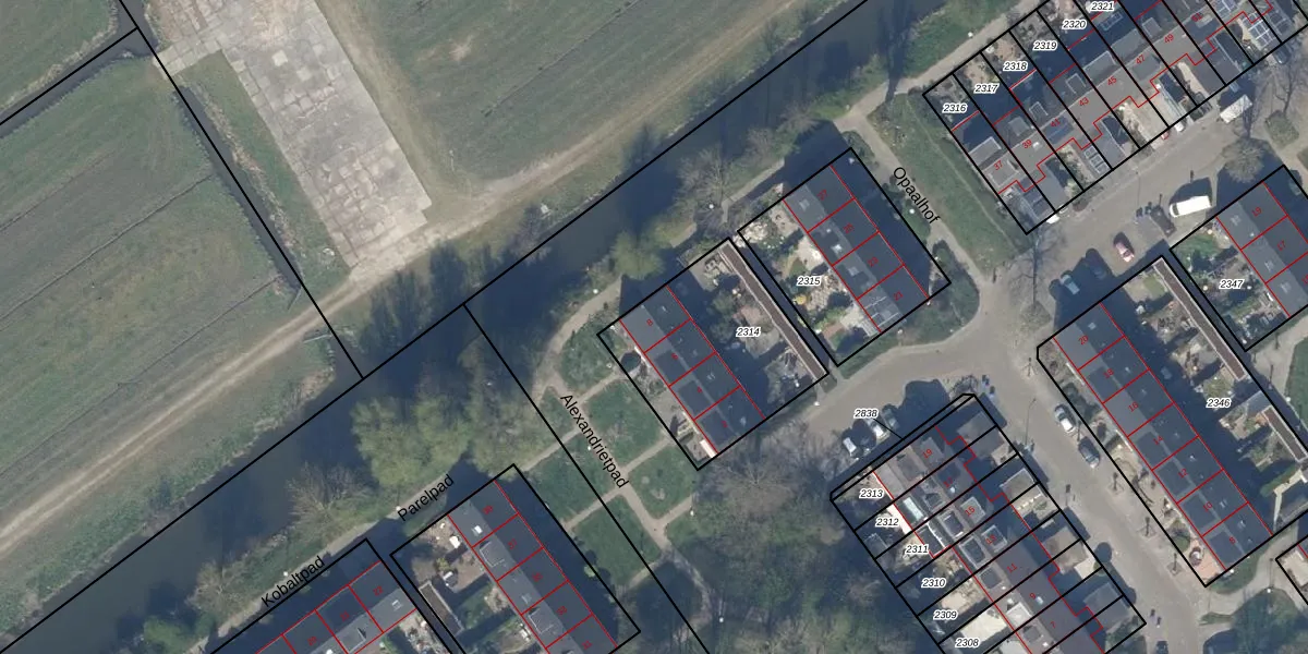 Het perceel waarop Alexandrietpad 8 staat heeft een oppervlakte van 644 m². Dit is een groot perceel. De perceeloppervlakte wordt geregistreerd door het Kadaster. Gedetailleerde informatie over de maten van dit perceel kunt u vinden in het rapport Kadastrale kaart met maatvoering van Alexandrietpad 8.