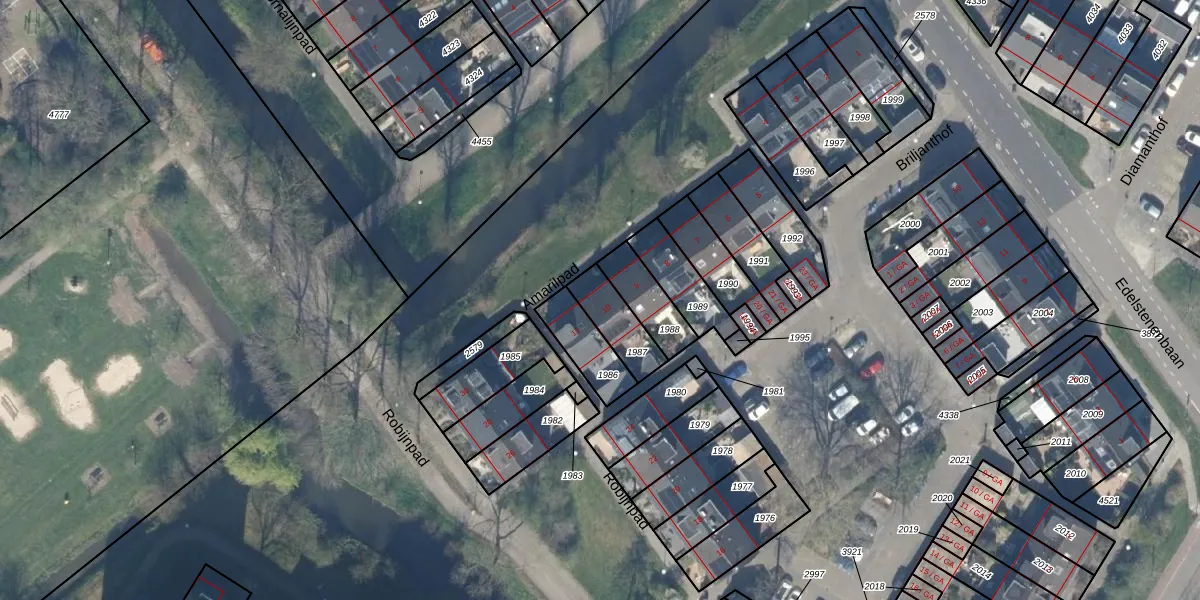 Gebruik de zoekbalk of klik op een perceel voor informatie over de adressen binnen dit perceel.