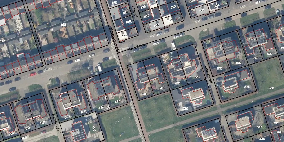 Gebruik de zoekbalk of klik op een perceel voor informatie over de adressen binnen dit perceel.