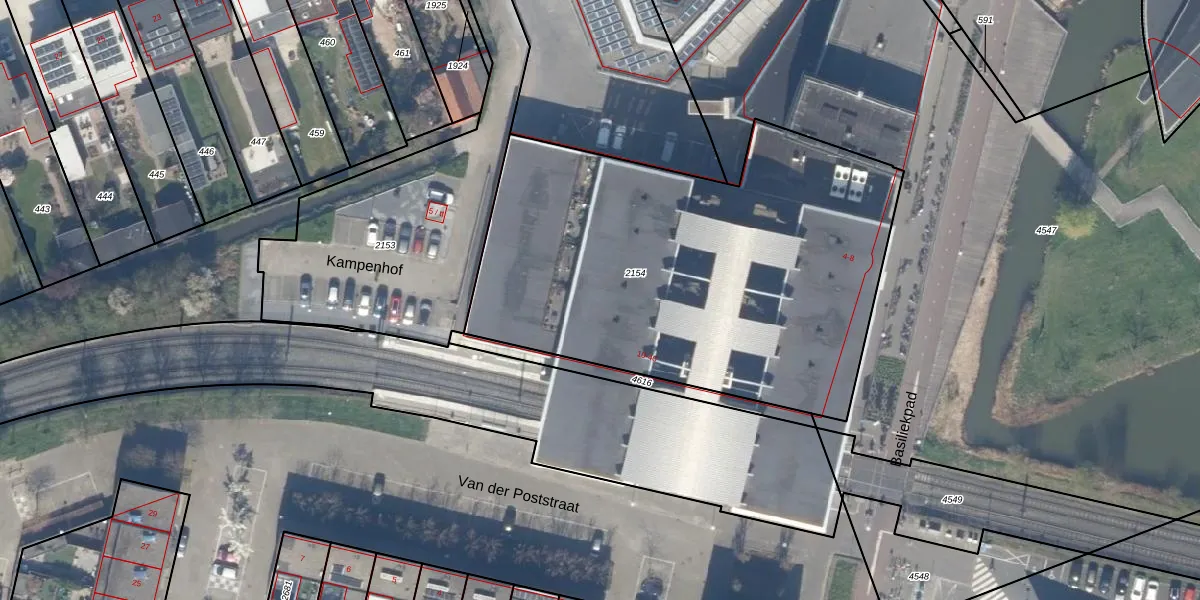 Het perceel waarop Basiliekpad 14 staat heeft een oppervlakte van 2502 m². Dit is een zeer groot perceel. De perceeloppervlakte wordt geregistreerd door het Kadaster. Gedetailleerde informatie over de maten van dit perceel kunt u vinden in het rapport Kadastrale kaart met maatvoering van Basiliekpad 14.