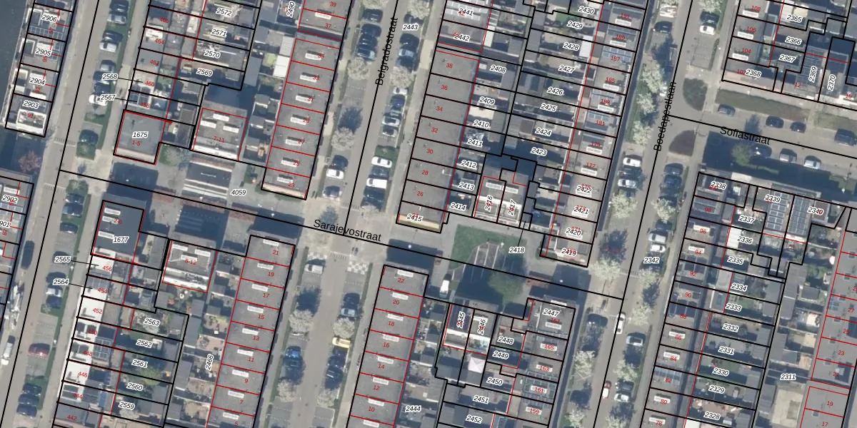 Het perceel waarop Belgradostraat 24 staat heeft een oppervlakte van 60 m². Dit is een klein perceel. De perceeloppervlakte wordt geregistreerd door het Kadaster. Gedetailleerde informatie over de maten van dit perceel kunt u vinden in het rapport Kadastrale kaart met maatvoering van Belgradostraat 24.