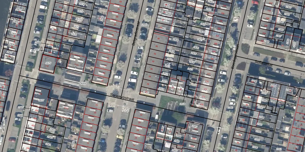 Het perceel waarop Belgradostraat 28 staat heeft een oppervlakte van 86 m². Dit is een klein perceel. De perceeloppervlakte wordt geregistreerd door het Kadaster. Gedetailleerde informatie over de maten van dit perceel kunt u vinden in het rapport Kadastrale kaart met maatvoering van Belgradostraat 28.