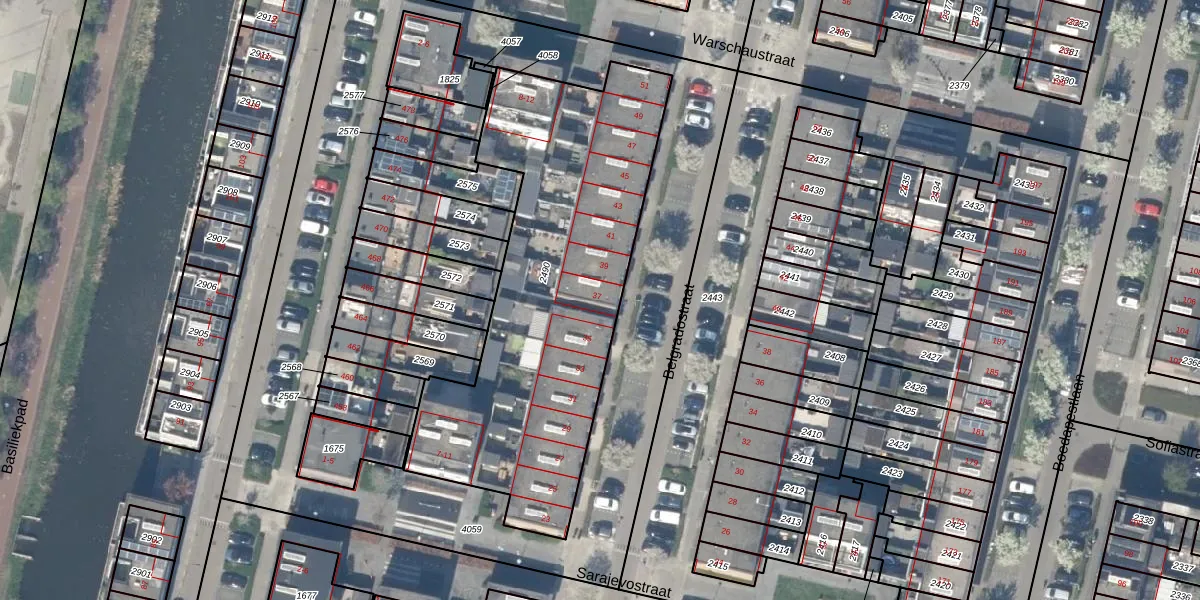 Het perceel waarop Belgradostraat 37 staat heeft een oppervlakte van 1795 m². Dit is een zeer groot perceel. De perceeloppervlakte wordt geregistreerd door het Kadaster. Gedetailleerde informatie over de maten van dit perceel kunt u vinden in het rapport Kadastrale kaart met maatvoering van Belgradostraat 37.