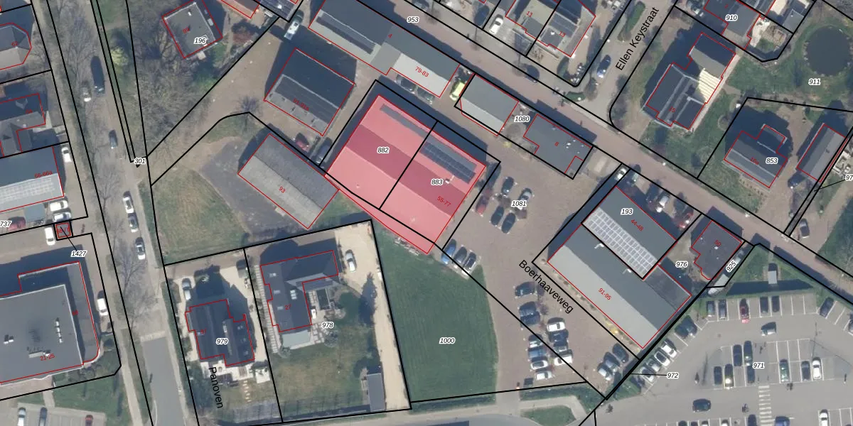 Boerhaaveweg 57 is gelegen op kadastraal perceel ISS00H883. Deze kadastrale aanduiding is uniek en wordt gebruikt door het Kadaster om eigendomsrechten en andere zakelijke rechten vast te leggen. Het perceel maakt onderdeel uit van de kadastrale gemeente IJsselstein.