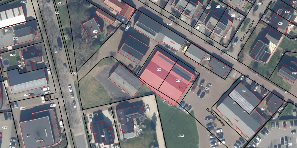 Het perceel waarop Boerhaaveweg 75 staat heeft een oppervlakte van 435 m². Dit is een groot perceel. De perceeloppervlakte wordt geregistreerd door het Kadaster. Gedetailleerde informatie over de maten van dit perceel kunt u vinden in het rapport Kadastrale kaart met maatvoering van Boerhaaveweg 75.
