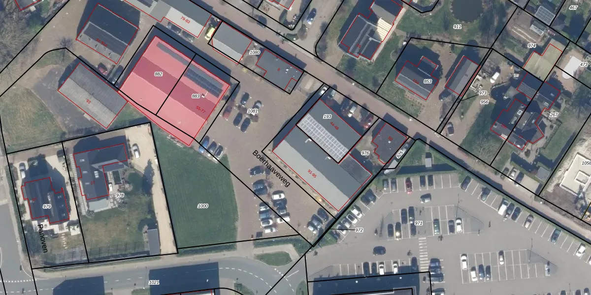 Het perceel waarop Boerhaaveweg 91 staat heeft een oppervlakte van 800 m². Dit is een groot perceel. De perceeloppervlakte wordt geregistreerd door het Kadaster. Gedetailleerde informatie over de maten van dit perceel kunt u vinden in het rapport Kadastrale kaart met maatvoering van Boerhaaveweg 91.