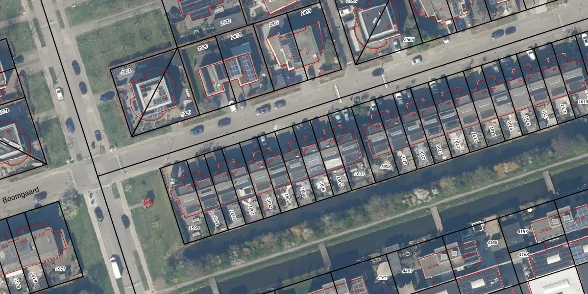 Het perceel waarop Boomgaard 108 staat heeft een oppervlakte van 171 m². Dit is een middelgroot perceel. De perceeloppervlakte wordt geregistreerd door het Kadaster. Gedetailleerde informatie over de maten van dit perceel kunt u vinden in het rapport Kadastrale kaart met maatvoering van Boomgaard 108.