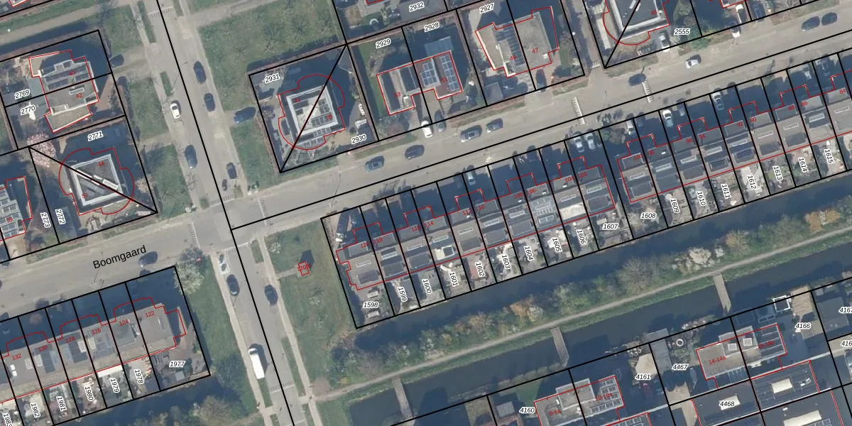 Het perceel waarop Boomgaard 114 staat heeft een oppervlakte van 171 m². Dit is een middelgroot perceel. De perceeloppervlakte wordt geregistreerd door het Kadaster. Gedetailleerde informatie over de maten van dit perceel kunt u vinden in het rapport Kadastrale kaart met maatvoering van Boomgaard 114.