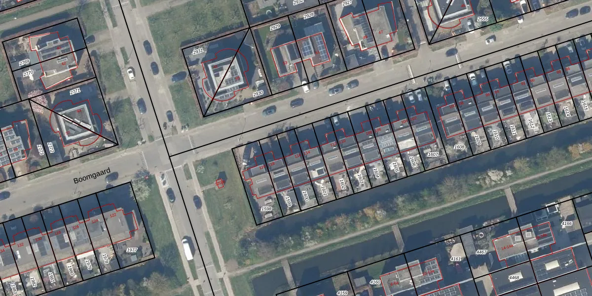 Het perceel waarop Boomgaard 116 staat heeft een oppervlakte van 171 m². Dit is een middelgroot perceel. De perceeloppervlakte wordt geregistreerd door het Kadaster. Gedetailleerde informatie over de maten van dit perceel kunt u vinden in het rapport Kadastrale kaart met maatvoering van Boomgaard 116.
