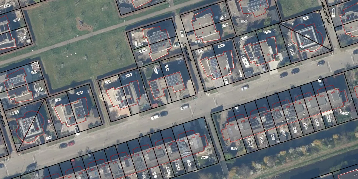 Gebruik de zoekbalk of klik op een perceel voor informatie over de adressen binnen dit perceel.