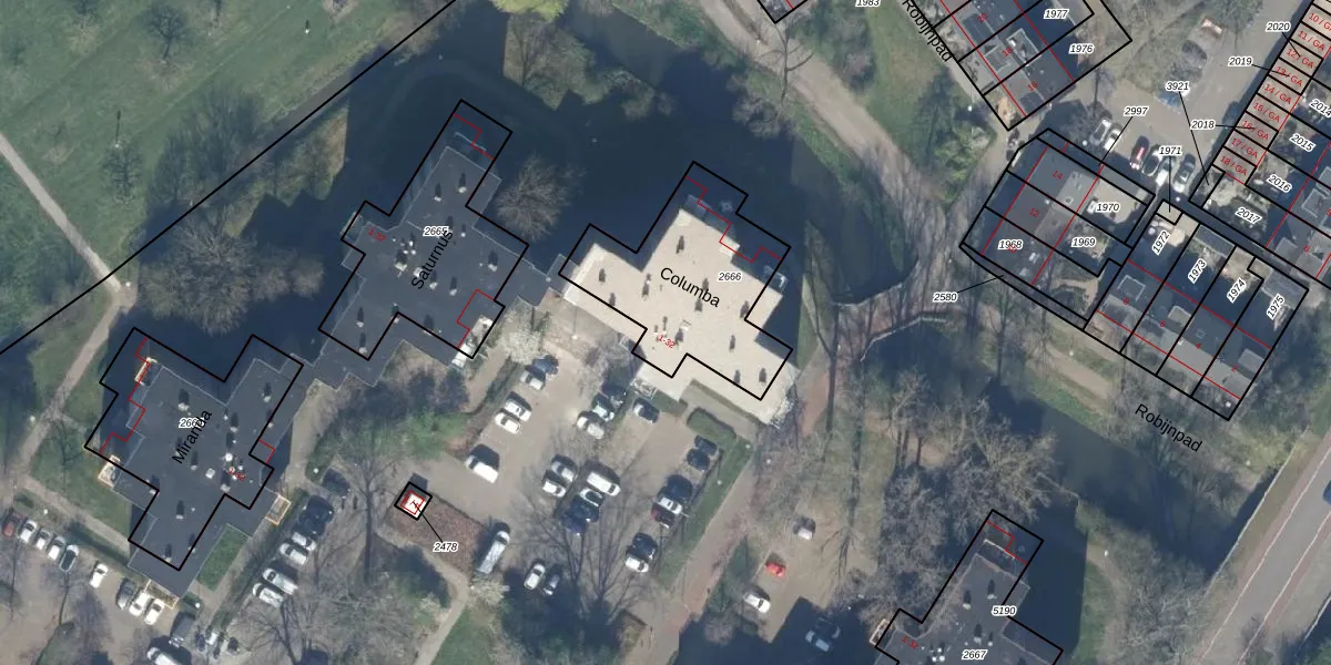 Het perceel waarop Columba 1 staat heeft een oppervlakte van 630 m². Dit is een groot perceel. De perceeloppervlakte wordt geregistreerd door het Kadaster. Gedetailleerde informatie over de maten van dit perceel kunt u vinden in het rapport Kadastrale kaart met maatvoering van Columba 1.