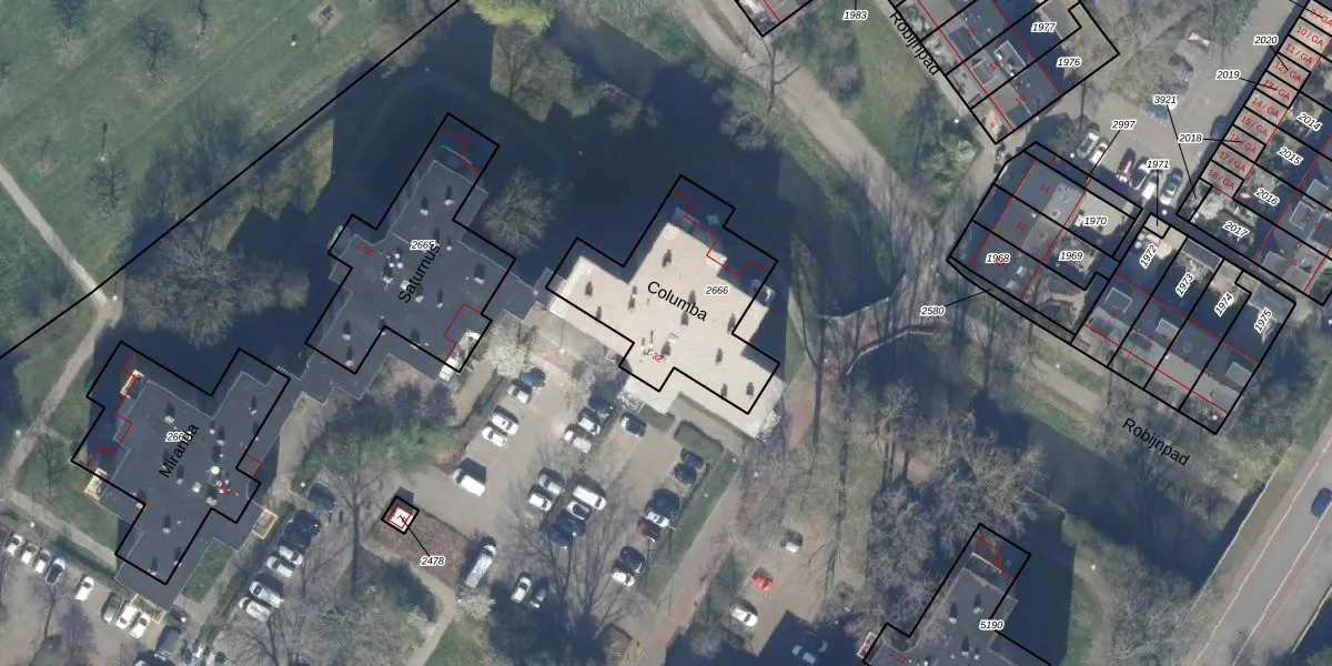 Het perceel waarop Columba 14 staat heeft een oppervlakte van 630 m². Dit is een groot perceel. De perceeloppervlakte wordt geregistreerd door het Kadaster. Gedetailleerde informatie over de maten van dit perceel kunt u vinden in het rapport Kadastrale kaart met maatvoering van Columba 14.