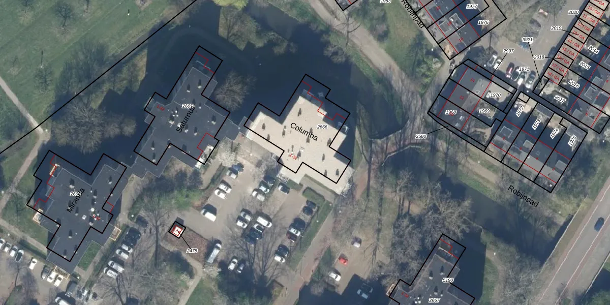 Het perceel waarop Columba 15 staat heeft een oppervlakte van 630 m². Dit is een groot perceel. De perceeloppervlakte wordt geregistreerd door het Kadaster. Gedetailleerde informatie over de maten van dit perceel kunt u vinden in het rapport Kadastrale kaart met maatvoering van Columba 15.