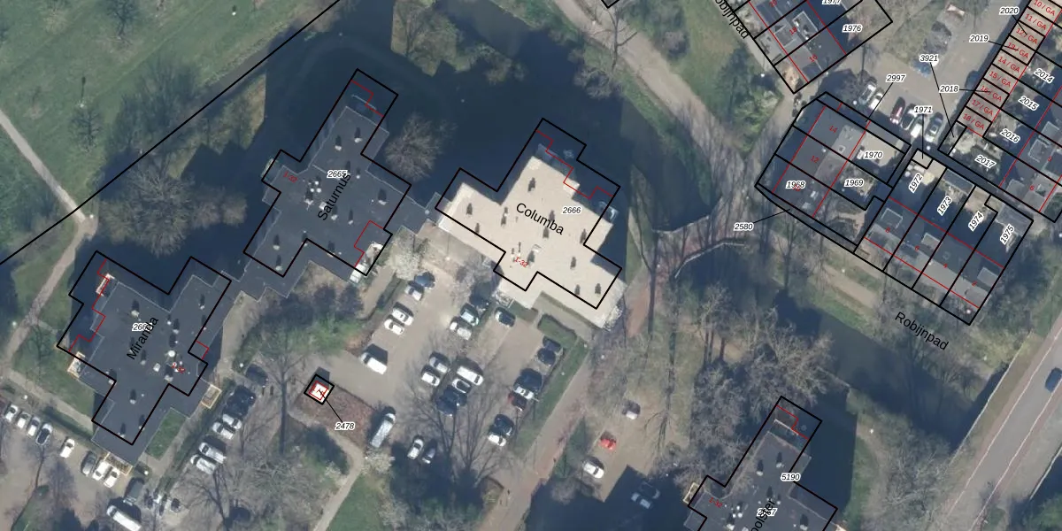 Het perceel waarop Columba 2 staat heeft een oppervlakte van 630 m². Dit is een groot perceel. De perceeloppervlakte wordt geregistreerd door het Kadaster. Gedetailleerde informatie over de maten van dit perceel kunt u vinden in het rapport Kadastrale kaart met maatvoering van Columba 2.