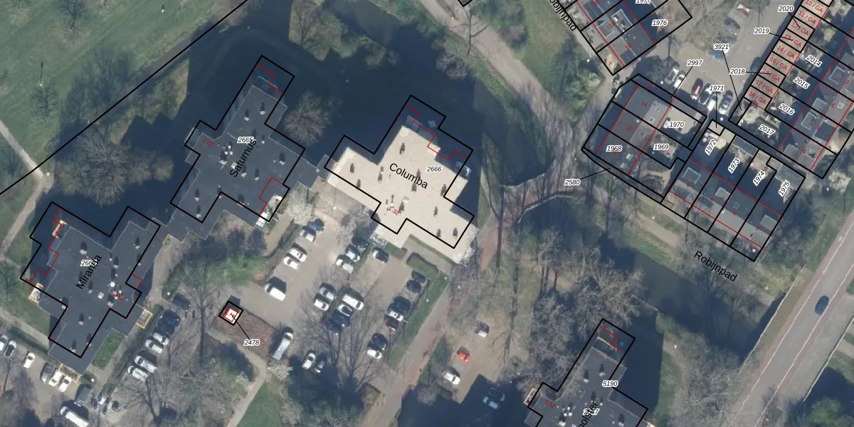 Het perceel waarop Columba 31 staat heeft een oppervlakte van 630 m². Dit is een groot perceel. De perceeloppervlakte wordt geregistreerd door het Kadaster. Gedetailleerde informatie over de maten van dit perceel kunt u vinden in het rapport Kadastrale kaart met maatvoering van Columba 31.