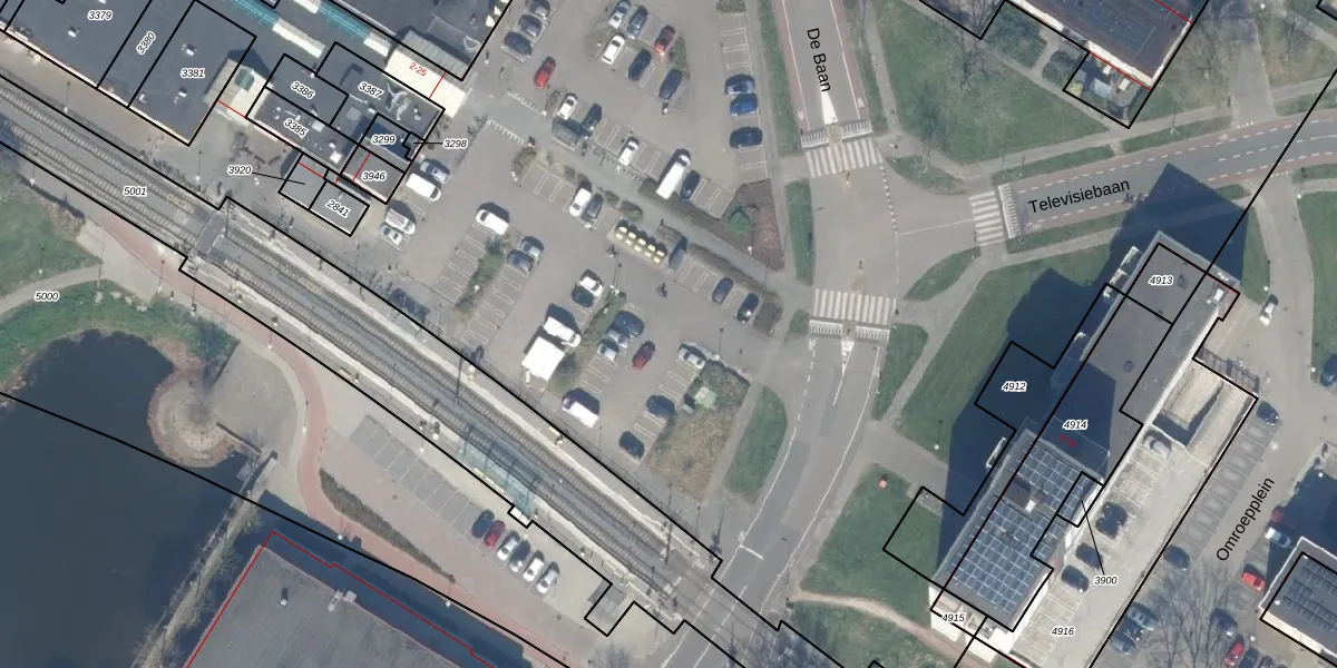 Het perceel waarop De Baan 57 staat heeft een oppervlakte van 8,2 ha. Dit is een zeer groot perceel. De perceeloppervlakte wordt geregistreerd door het Kadaster. Gedetailleerde informatie over de maten van dit perceel kunt u vinden in het rapport Kadastrale kaart met maatvoering van De Baan 57.