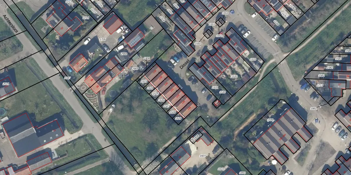 Het perceel waarop Dissel 142 staat heeft een oppervlakte van 72 m². Dit is een klein perceel. De perceeloppervlakte wordt geregistreerd door het Kadaster. Gedetailleerde informatie over de maten van dit perceel kunt u vinden in het rapport Kadastrale kaart met maatvoering van Dissel 142.