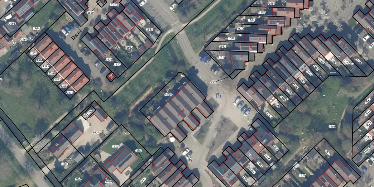 Het perceel waarop Dissel 164 staat heeft een oppervlakte van 735 m². Dit is een groot perceel. De perceeloppervlakte wordt geregistreerd door het Kadaster. Gedetailleerde informatie over de maten van dit perceel kunt u vinden in het rapport Kadastrale kaart met maatvoering van Dissel 164.