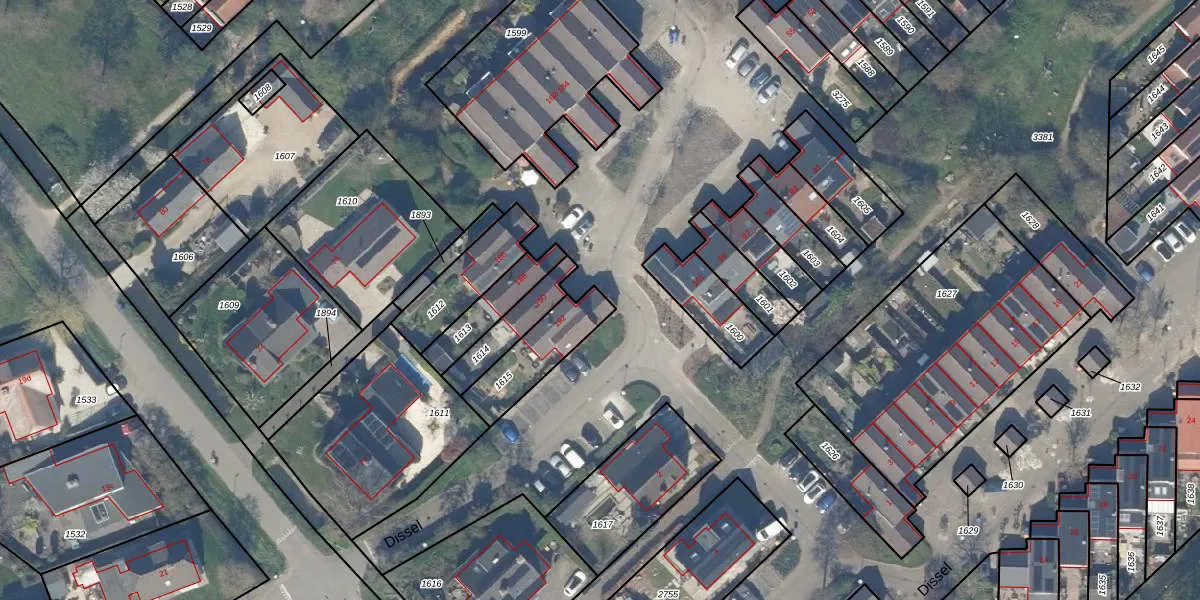 Het perceel waarop Dissel 192 staat heeft een oppervlakte van 202 m². Dit is een middelgroot perceel. De perceeloppervlakte wordt geregistreerd door het Kadaster. Gedetailleerde informatie over de maten van dit perceel kunt u vinden in het rapport Kadastrale kaart met maatvoering van Dissel 192.
