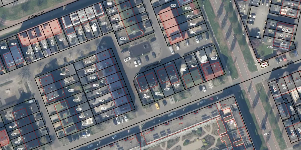 Het perceel waarop Dreesplein 4 staat heeft een oppervlakte van 151 m². Dit is een middelgroot perceel. De perceeloppervlakte wordt geregistreerd door het Kadaster. Gedetailleerde informatie over de maten van dit perceel kunt u vinden in het rapport Kadastrale kaart met maatvoering van Dreesplein 4.