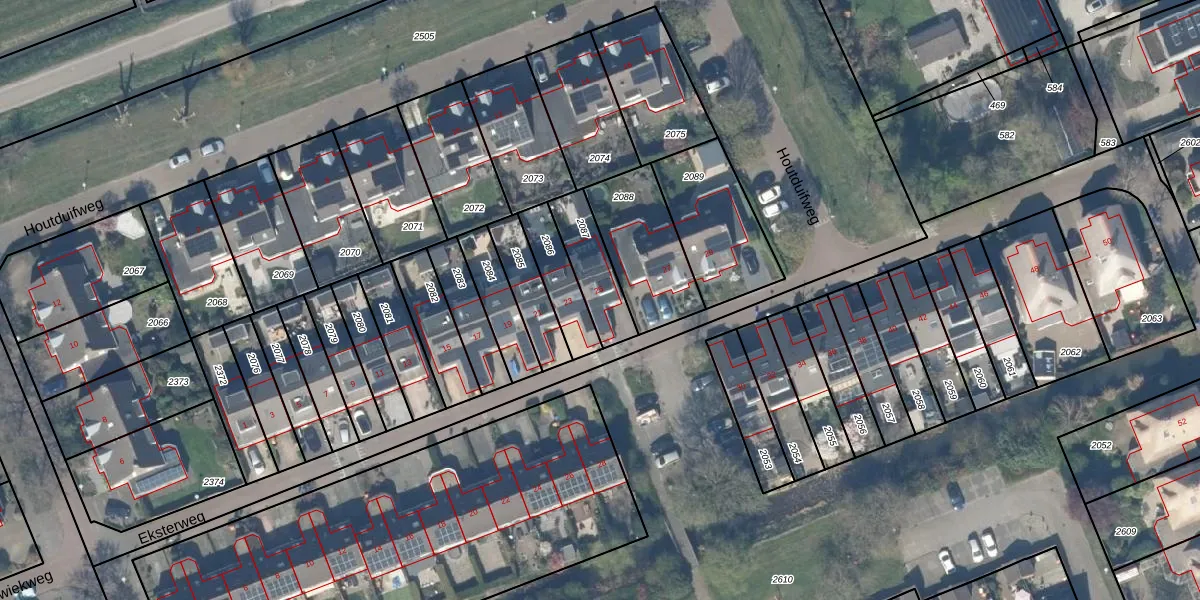Het perceel waarop Eksterweg 25 staat heeft een oppervlakte van 166 m². Dit is een middelgroot perceel. De perceeloppervlakte wordt geregistreerd door het Kadaster. Gedetailleerde informatie over de maten van dit perceel kunt u vinden in het rapport Kadastrale kaart met maatvoering van Eksterweg 25.