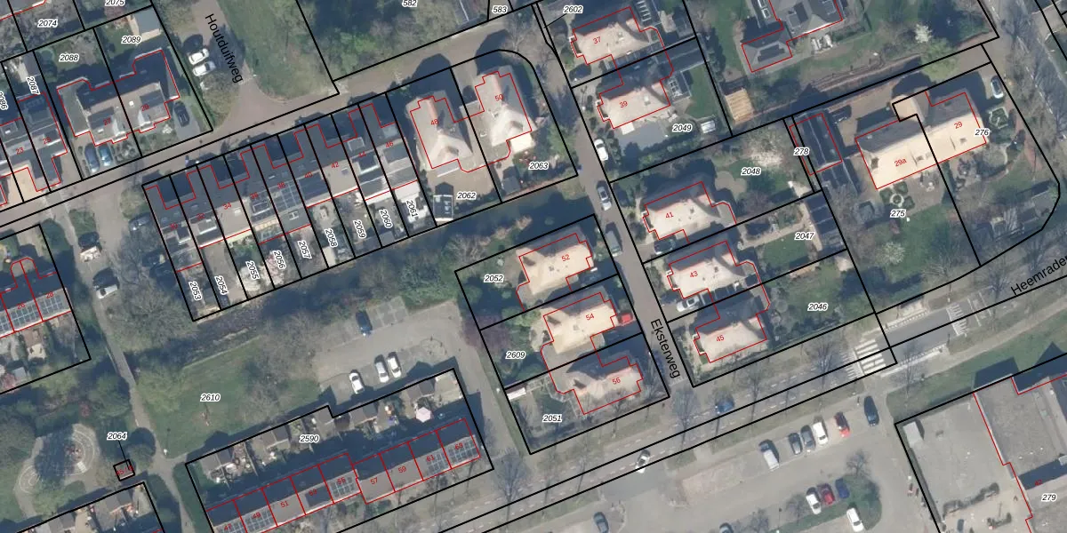 Het perceel waarop Eksterweg 52 staat heeft een oppervlakte van 341 m². Dit is een groot perceel. De perceeloppervlakte wordt geregistreerd door het Kadaster. Gedetailleerde informatie over de maten van dit perceel kunt u vinden in het rapport Kadastrale kaart met maatvoering van Eksterweg 52.