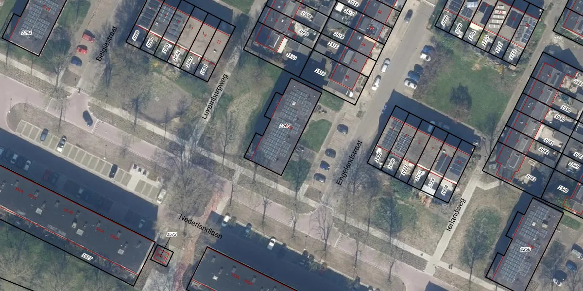 Het perceel waarop Engelandstraat 12 staat heeft een oppervlakte van 414 m². Dit is een groot perceel. De perceeloppervlakte wordt geregistreerd door het Kadaster. Gedetailleerde informatie over de maten van dit perceel kunt u vinden in het rapport Kadastrale kaart met maatvoering van Engelandstraat 12.